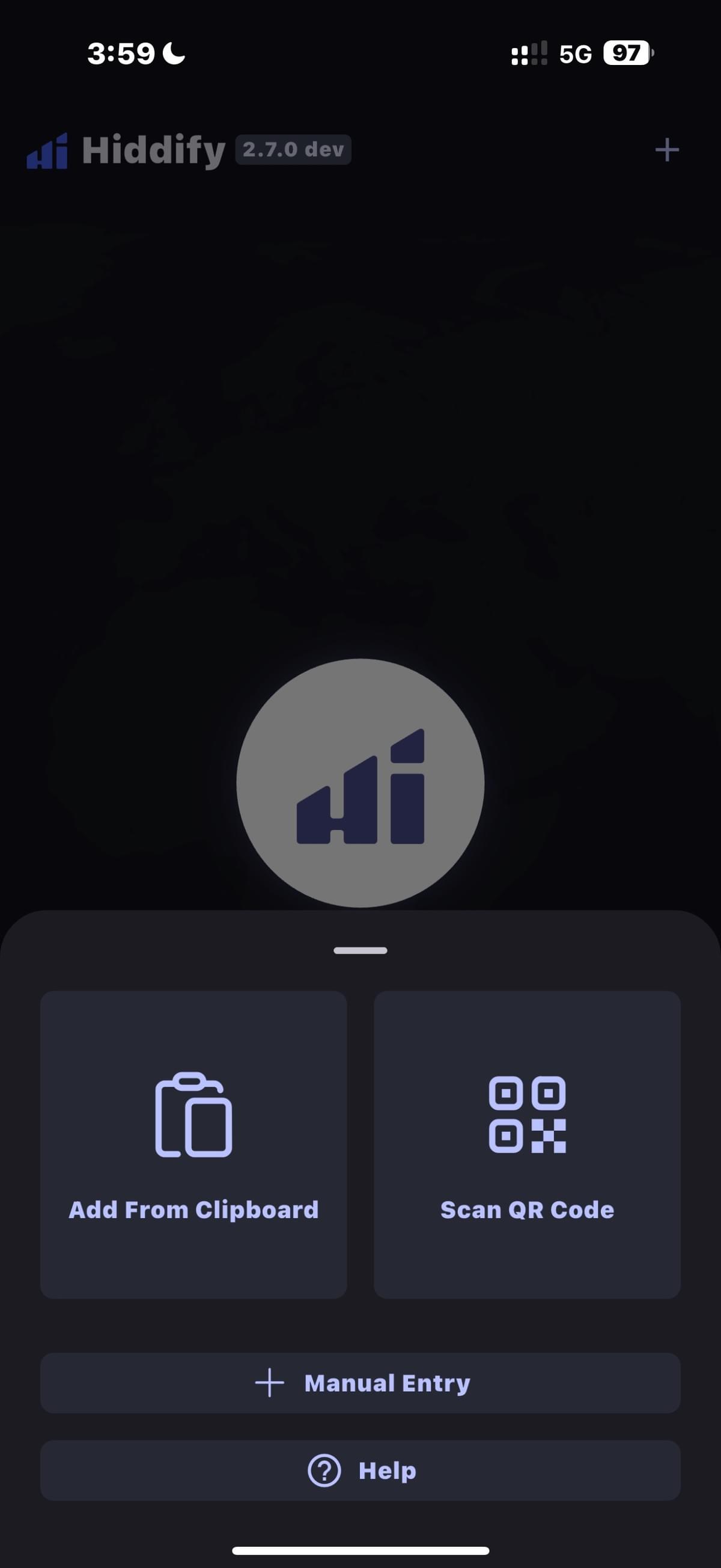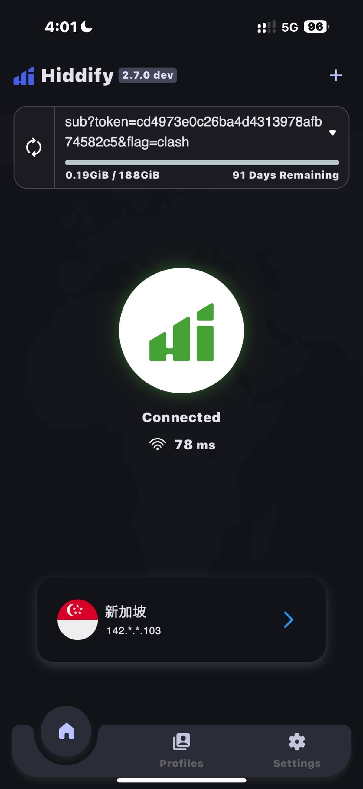 6. Open Hiddify, tap the 「+」 on the top right of the Home page,